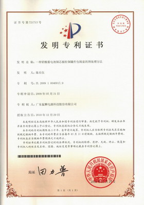 发明专利证书一种铅酸蓄电池铜芯