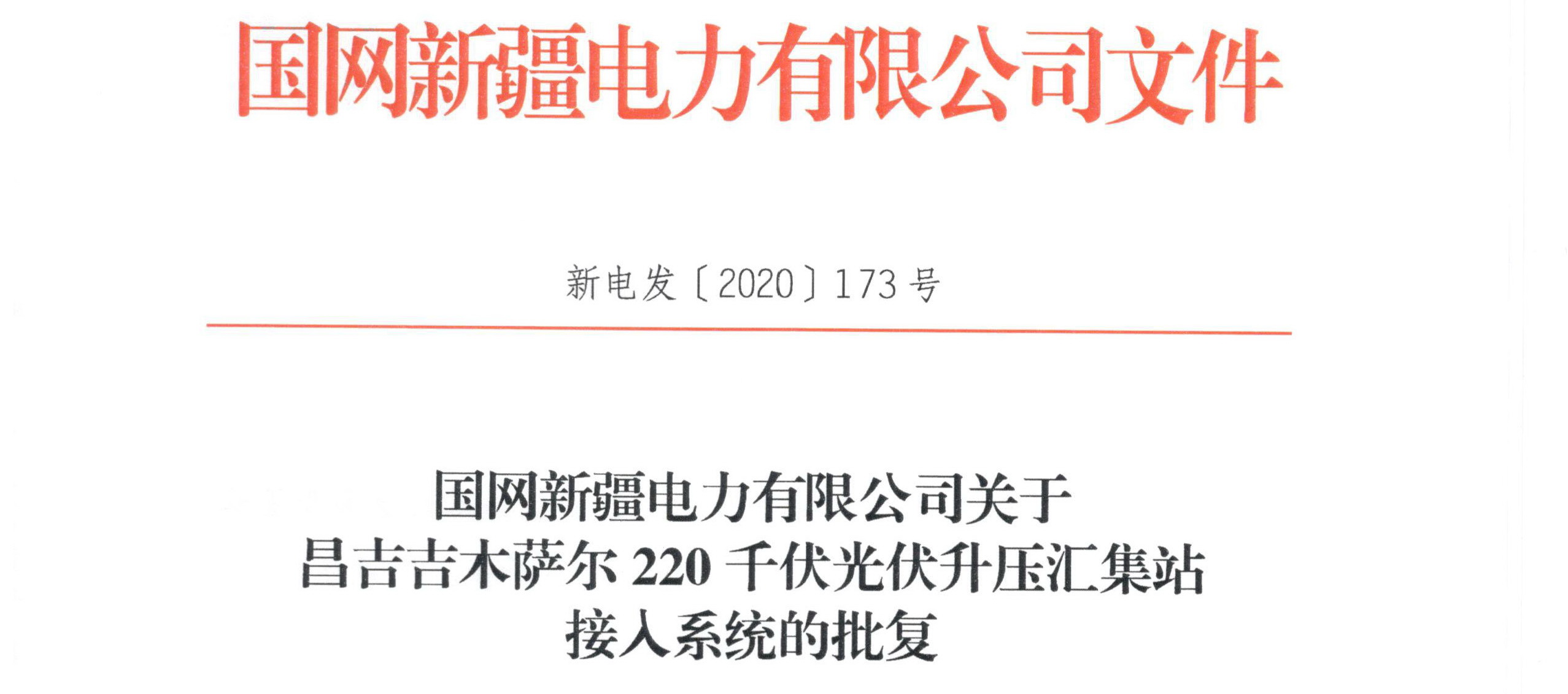 吉木萨尔县猛狮光电牵头建设的220千伏光伏升压汇集站获准接入国网新彊电力系统