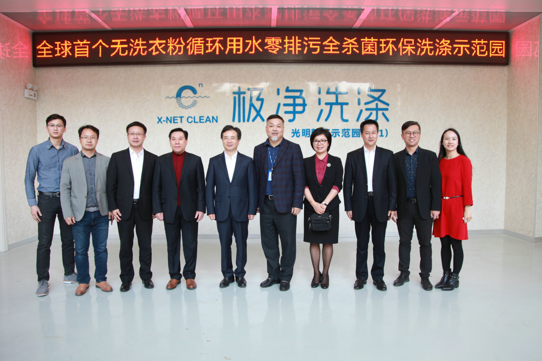 在华力特大厦,考察团一行参观了华力特电气多功能展厅、iDCO大数据一体化智慧云平台及极净洗涤——全球首个无洗衣粉全杀菌洗涤示范区。屠方魁董事长详细介绍了华力特电气的主营业务、核心产品及极净洗涤示范生产线等。