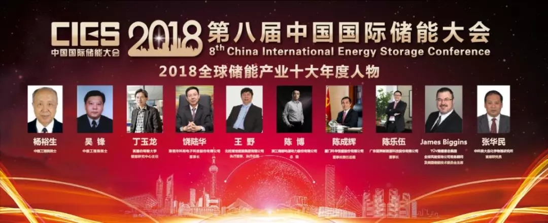 据了解,“全球储能产业十大年度人物”评选自2015年起每年举办一次,旨在推选为储能事业发展做出杰出贡献的人士,激励储能行业管理者和从业者锐意进取、改革创新。2018年度获此殊荣的业界知名人士还包括:中国工程院院士杨裕生、吴锋,英国伯明翰大学教授丁玉龙,深圳市科陆电子科技股份有限公司董事长饶陆华,北控清洁能源集团有限公司执行董事、执行总裁王野,浙江南都电源动力股份有限公司总裁陈博,厦门科华恒盛股份有限公司董事长兼任总裁陈成辉,TüV南德意志集团全球风险咨询公司常务顾问及美国储能技术委员会主席James Biggins,中科院大连化学物理研究所首席研究员张华民。