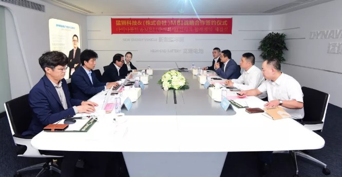 韩国(株式会社)MBI总经理丁台镇、常务尹现燮、部长许滢,猛狮科技旗下福建猛狮新能源总经理王少平、铅电事业部营销中心副总经理林海明、营销中心经理刘志鹏出席会谈并见证签约。