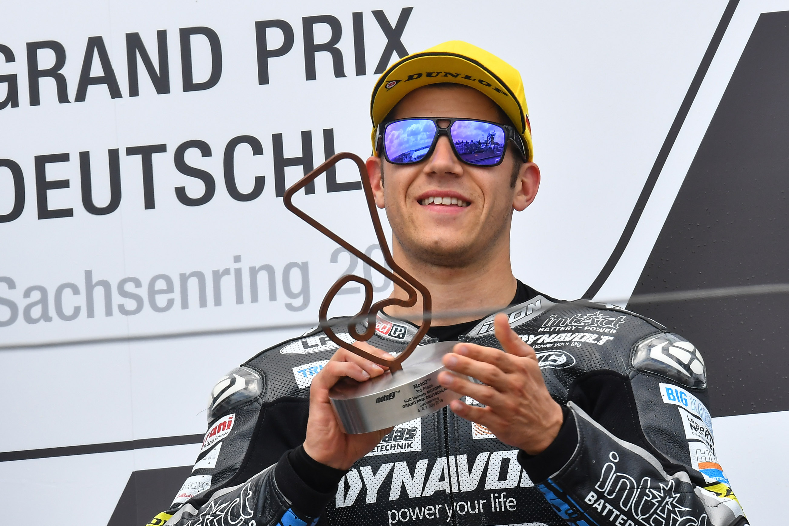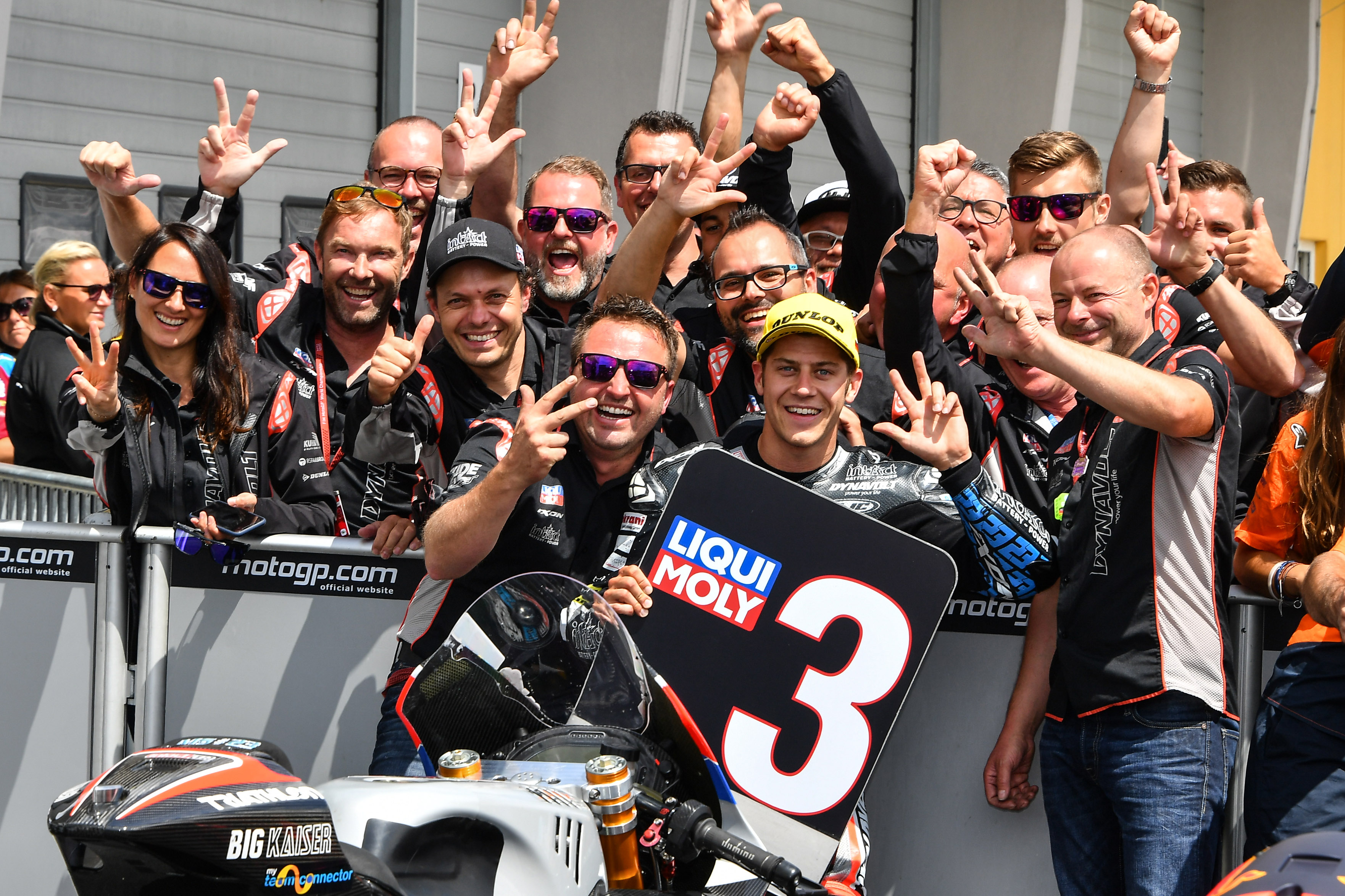 当地时间7月7日,MOTO GP在德国开战,猛狮车队(DYNAVOLT INTACT GP)的Marcel Schrötte获得第三名,另外车手Tom Lüthi充分利用了多达28圈的比赛,并获得了第五名,这也是Marcel Schrötte今年第三次荣登领奖台。