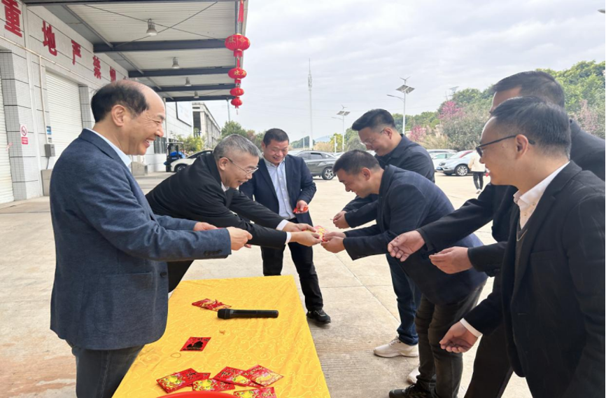 开工仪式后,总裁王少武、副总裁郝身健带领各部门领导携新春祝福为福建新能源员工派发新年红包,并祝大家新年快乐。