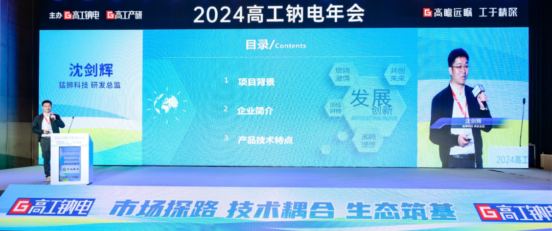 钠电年会上,福建猛狮研发总监--沈剑辉就“起动用钠离子电池开发进展”展开主题演讲,详细介绍了钠离子电池领域的最新研发成果和应用进展。